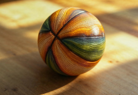 A shot of a ball with flag prints