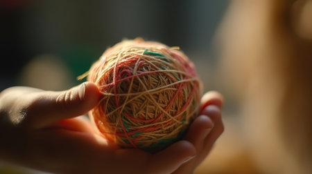 ball of thread in the hands of women