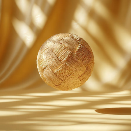3d rendering of a ball on a golden satin background