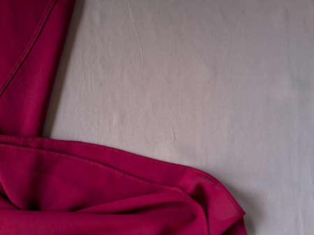 Red fabric on a pink background, close-up, copy space