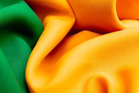 Texture background pattern. Yellow and green crepe de china silk fabric. This silk is exceptionally smooth and soft, has a beautiful smooth texture.
