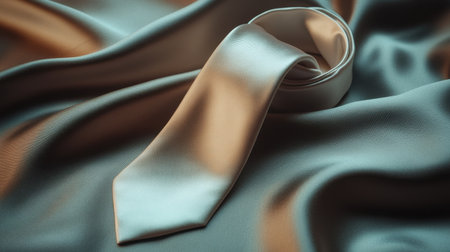 A beautifully crafted silk tie elegantly draped on a soft satin fabric, showcasing a luxurious aesthetic ideal for fashion and formal themes.