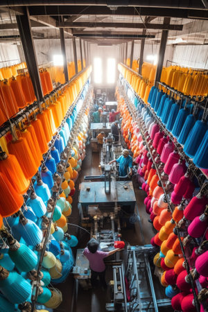 photo of inside textile factory line production view Photography AI Generated