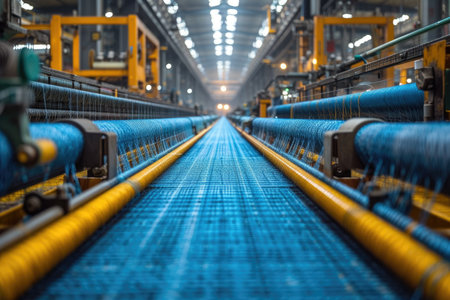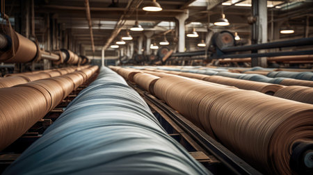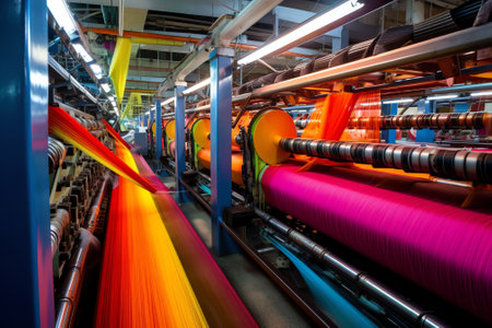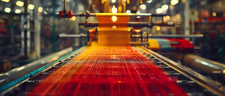textile industry machinery in a modern workshop, highlighting the intricate details and mechanisms that make up these complex systems.