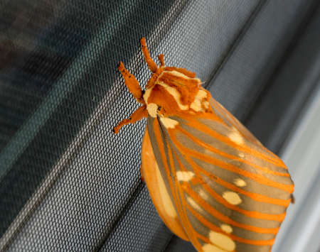 Macro image of a large Regal Moth known as Citheronia Regalis which landed on the window screen in West Virginia