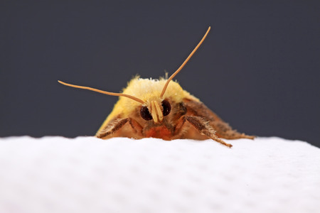 Sphrageidus similis the gold tail moth side view reflexion stock photo