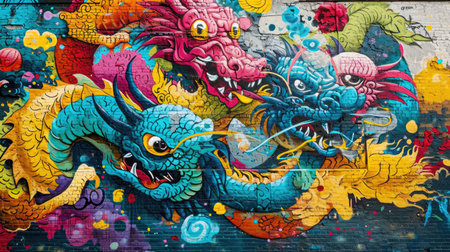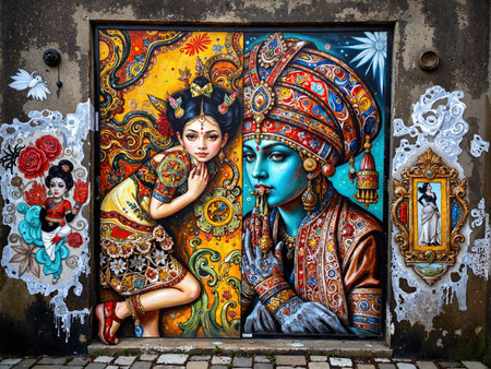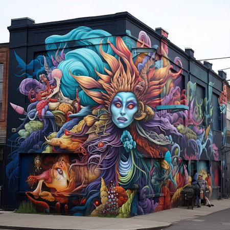 vandalisme of cultural mural on a urban wall, created with generative ai