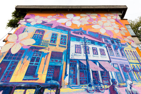PHUKET, THAILAND - APRIL 19, 2018: Street art in Phuket town, Phuket province, Thailand. Street arts are appearing all over Phuket town.