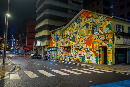 Kuala Lumpur, Malaysia - March 29, 2019: Beautiful colorful house on the city street