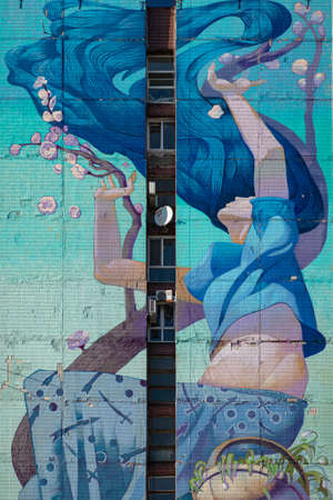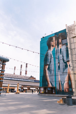 Saint-Petersburg, Russia, 03 September 2020: Public art space Sevkabel Port. Street art by ALEKSANDR DYOMA.