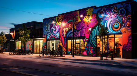 A building with a colorful mural on the side of it. Generative AI image.