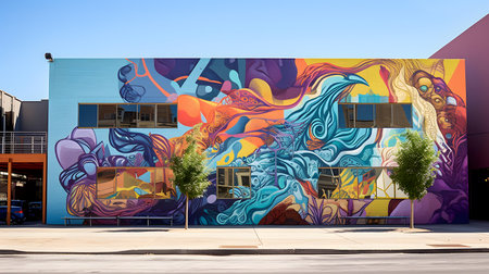 A building with a mural on the side of it. Generative AI image.