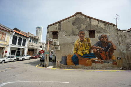 Penang, Malaysia - circa february, 2019: famous street art wall paintings in Georgetown, Penang Malaysia