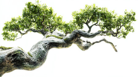 A close-up view of a bonsai tree with lush green foliage and a gnarled trunk, showcasing the beauty of nature.