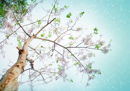 Autumnal tree with yellow leaves against blue sky. Color toning applied.