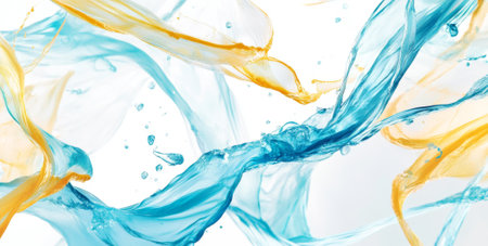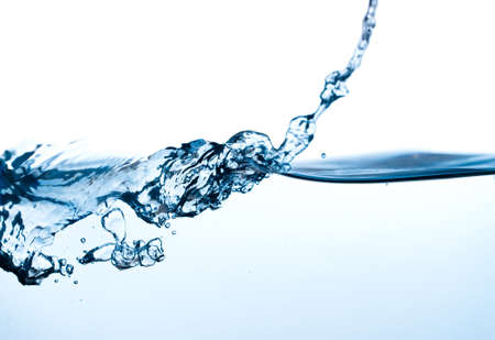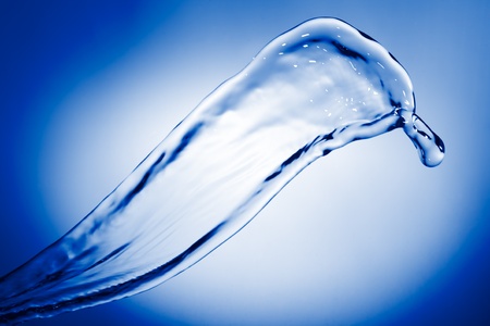 water stream with splash drops, blue background