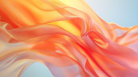 Explore a stunning abstract background featuring flowing silk fabric in warm tones of orange and red, enhanced by soft light for a dreamy and elegant look.