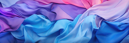 Abstract blue and pink background with folded textile ruffle. Generative AI