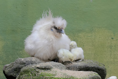 group of silkie chicken (also known as the Silky or Chinese silk chicken)
