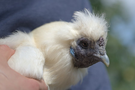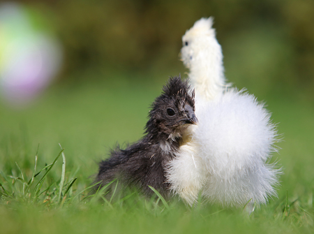Cute lovely adorable white Silkie Chicken from organic farm.
