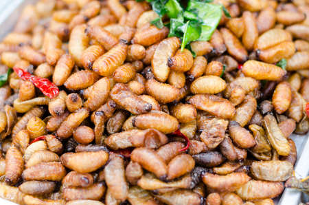 Fried insects street food in Thailand This is fried insect food is high in protein. And delicious, especially bamboo worms