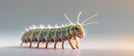 AI Generated. Macro Closeup of a Tiny Colorful Caterpillar with Visible Legs