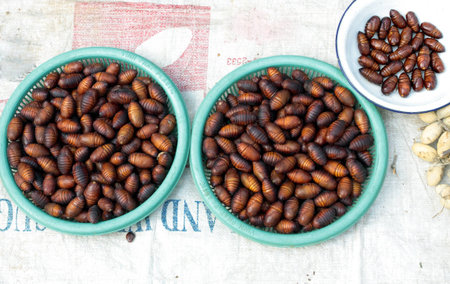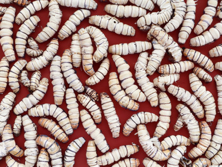 Close up of Silk worms and cocoons