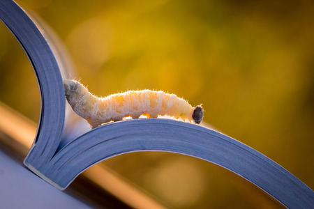 Worm, book, book worm on. Natural background morning Solar light.