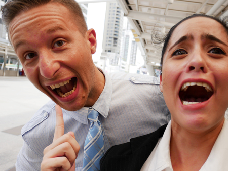 Selfie of cheerful friends goofing off. Happy people taking photo self portrait.