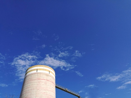 Silo tank, tower for storage of agricultural products, industrial plant for the production of wheat manufacturing.