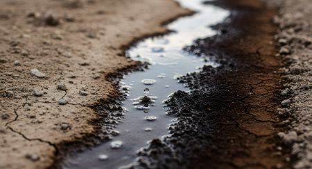 A closeup of polluted soil with evident chemical residues