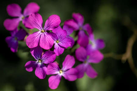 Bight pink annual wildflowers. Lunaria Annua or Honesty.
