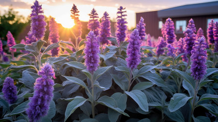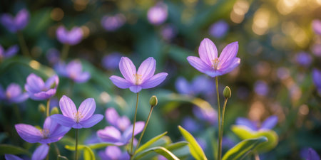 AI Generated. Vibrant Purple Flowers in Sunlight Botanical Garden Bloom