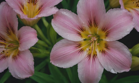 This captivating image features delicate pink flowers flourishing in lush greenery, capturing the essence of nature