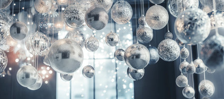 Decorative snowflake ornaments glisten in soft light creating a festive atmosphere for New Year celebrations bringing joy and warmth to the indoor space.