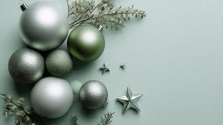 Christmas Magic: Christmas Balls in a Festive Frame. Perfect for Banners, Postcards, Invitations and Celebrations. Flat Layout with Top View, Copy Space and Enchanting Atmosphere.