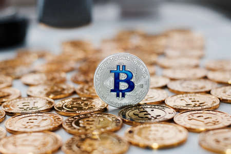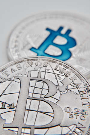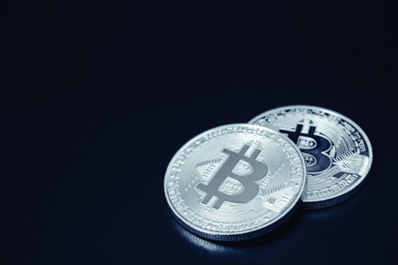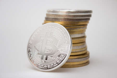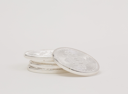 Digital currency physical silver bitcoin coin. Business bitcoin concept.