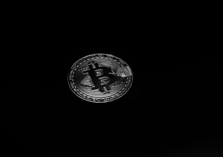Bitcoin on black background. The world economic crisis. Bitcoin is not a stable currency. Macro photo
