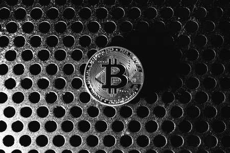 Cryptocurrency physical metal bitcoin coin. Digital currency virtual money concept.