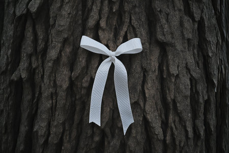 Peace Symbol: White Ribbon Tied Around Tree for Non-Violence