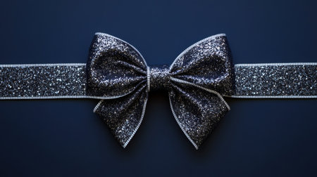This stunning image features a dazzling glitter bow resting on a dark background, ideal for enhancing gifts or special occasions with elegance.