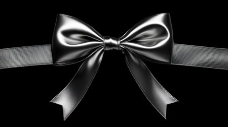 This image features an elegant black satin bow tied with smooth ribbons on a dark background, ideal for gift wrapping or decorative use.