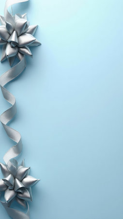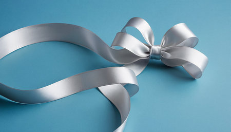 Elegant silver ribbon and bow on blue backdrop Perfect for holidays and winter themes