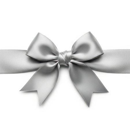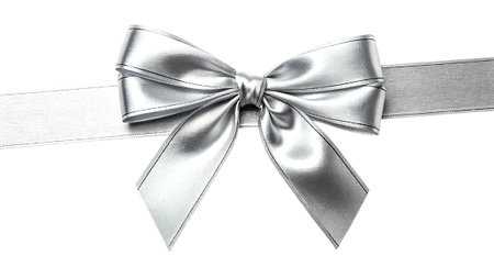 Elegant Silver Bow and Ribbon on White Background for Festive Designs
