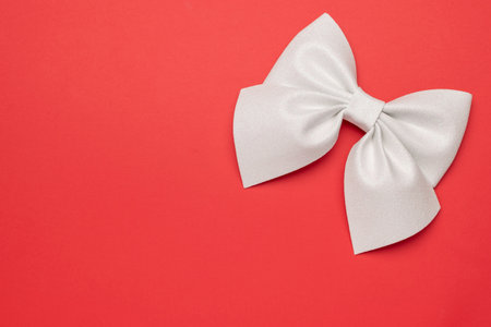 Elegant White Bow on Vibrant Red Background - Minimalistic Style Stock Photo