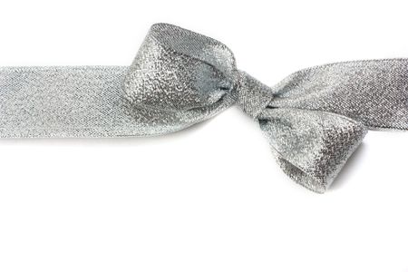 Silver satin ribbon and bow isolated on white background, clipping path included