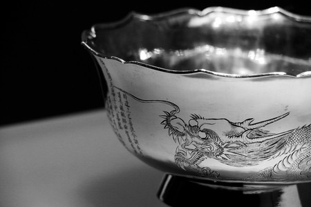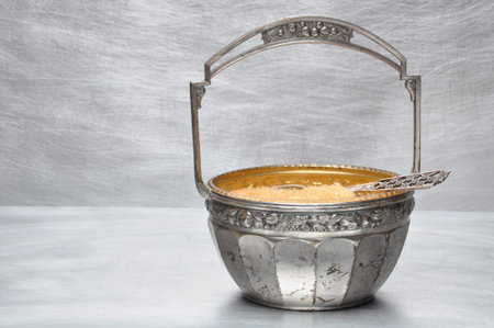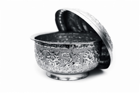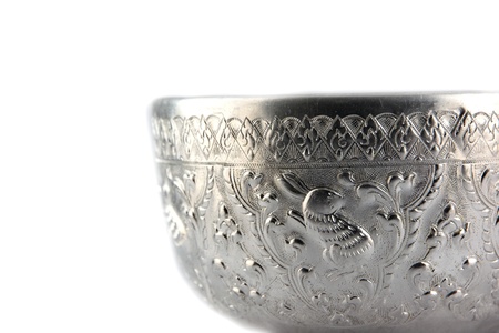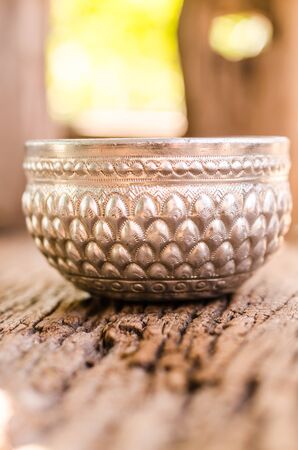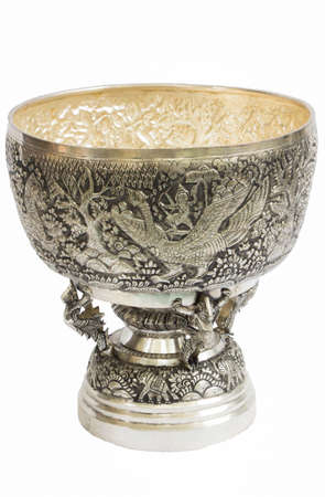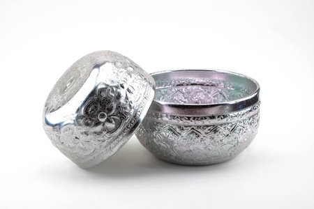 Old Thai silver bowl or Khan Maak in Thailand, a wedding ceremony accessories or engagement ceremony with betel, dowry, which the groom arranged to wear a bowl to pay respect to the bride's guardian.