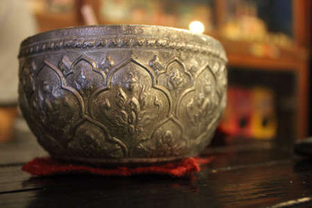 Lotus in monk s bowl for prayer in Buddhist ceremony