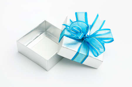 silver gift box is opened on white background