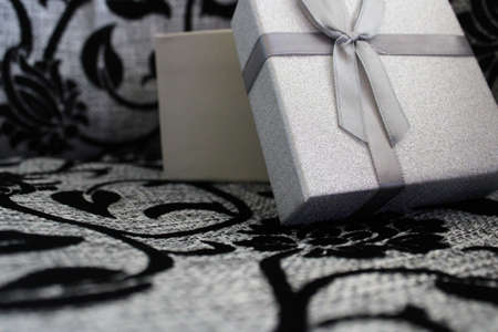 Gift silver boxes on a light table. colorful box of gifts.